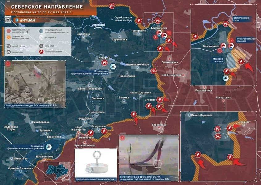 На Северском направлении есть тактические успехи в районе Белогоровки. На Краснолиманском без особых новостей. А вот Купянский участок фронта гремит. Сегодня Минобороны подтвердило освобождение Ивановки, еще одной ключевой точки на водораздельном хребте. Армия России продолжает теснить врага в районе Кисловки и Берестового, идут бои в районе села Новоегорьевка. Ожесточенные бои к северу от Стельмаховки. Весь участок фронта активен и, судя по всему, благодаря тому, что часть резервов ВСУ отправили отсюда в Волчанск, Липцы и Харьков, оборона противника прогибается.