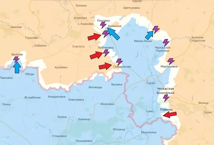 В Суджанском районе линия соприкосновения также оставалась статичной. Появлялись сообщения атаках украинских формирований в районе Плехово, однако сведений об изменении зон контроля на этом участке нет.