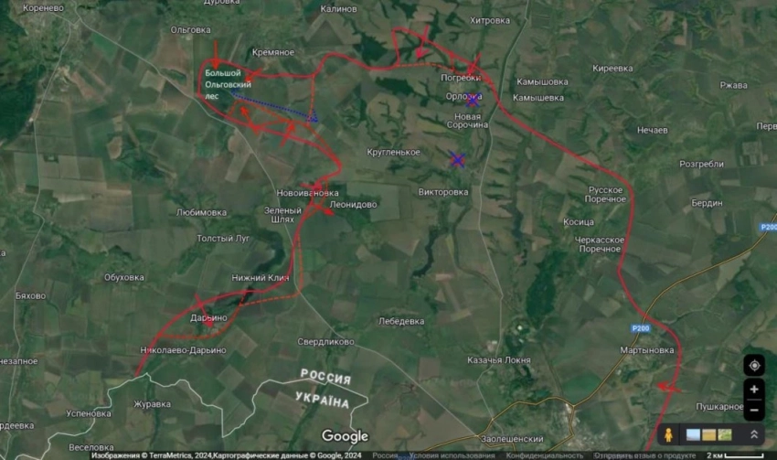 В свою очередь по данным Telegram-канала "Два майора", в Курской области группировка войск "Север" продолжает продвижение в районе н.п. Нижний Клин и Дарьино, а также проводят зачистку в Ольговском лесу. В ходе зачистки выявлена группа ВСУ в количестве 13 человек, которая пыталась вырваться из окружения. В стрелковом бою уничтожено 2 солдата противника, остальные 11 сдались в плен. Всего в плену находится 472 военнослужащих ВСУ.