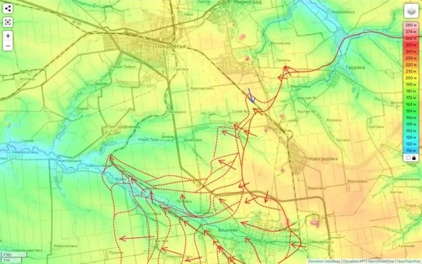 Кроме того, зафиксировано продвижение российских сил и вдоль трассы на Покровск.