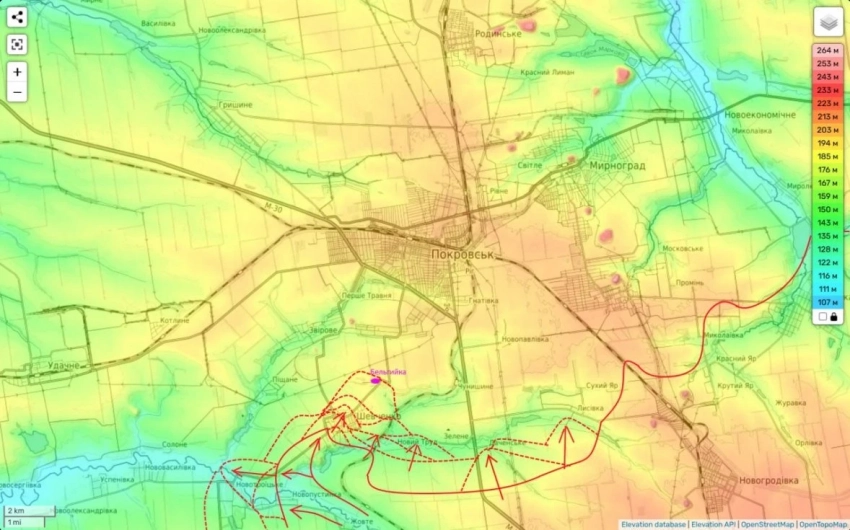 По заявлениям источников, российские войска стремятся окружить Покровск, оказывая наступательное давление на украинские позиции с юга.