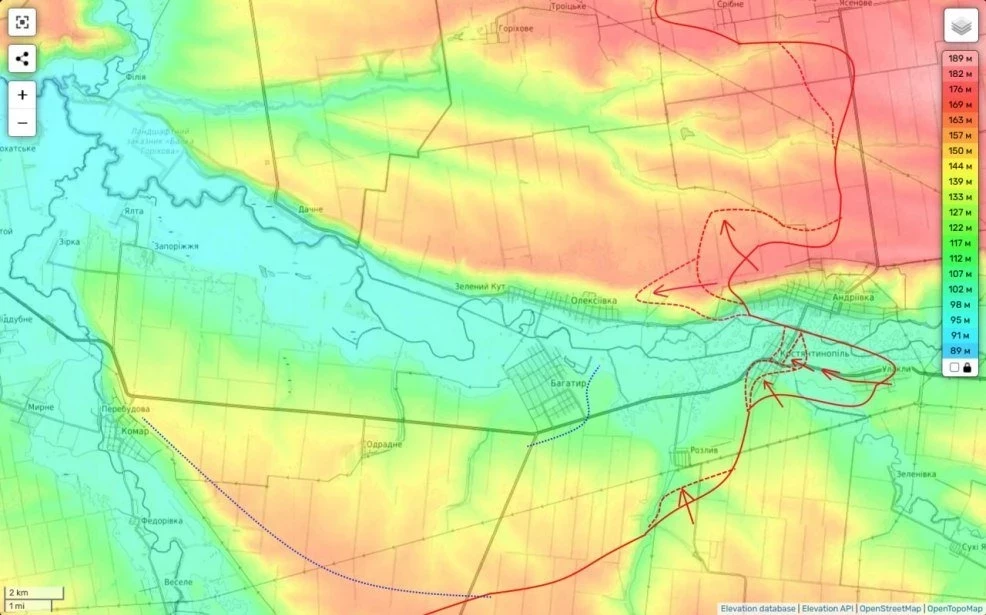 Противник был отброшен на западные окраины села и пытается там сдерживать наше наступление. Падение Константинополя, а далее почти автоматически н.п. Разлив, довольно быстро отодвинет фронт к населенному пункту Богатырь.