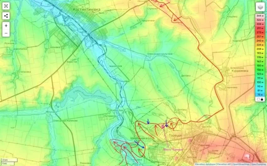 На Торецком направлении третьи сутки противник пытается прорваться в Торецк и закрепиться на его территории. В виду того, что сплошной линии фронта здесь нет это ему удается. Что приводит к постоянным боям внутри городской черты.