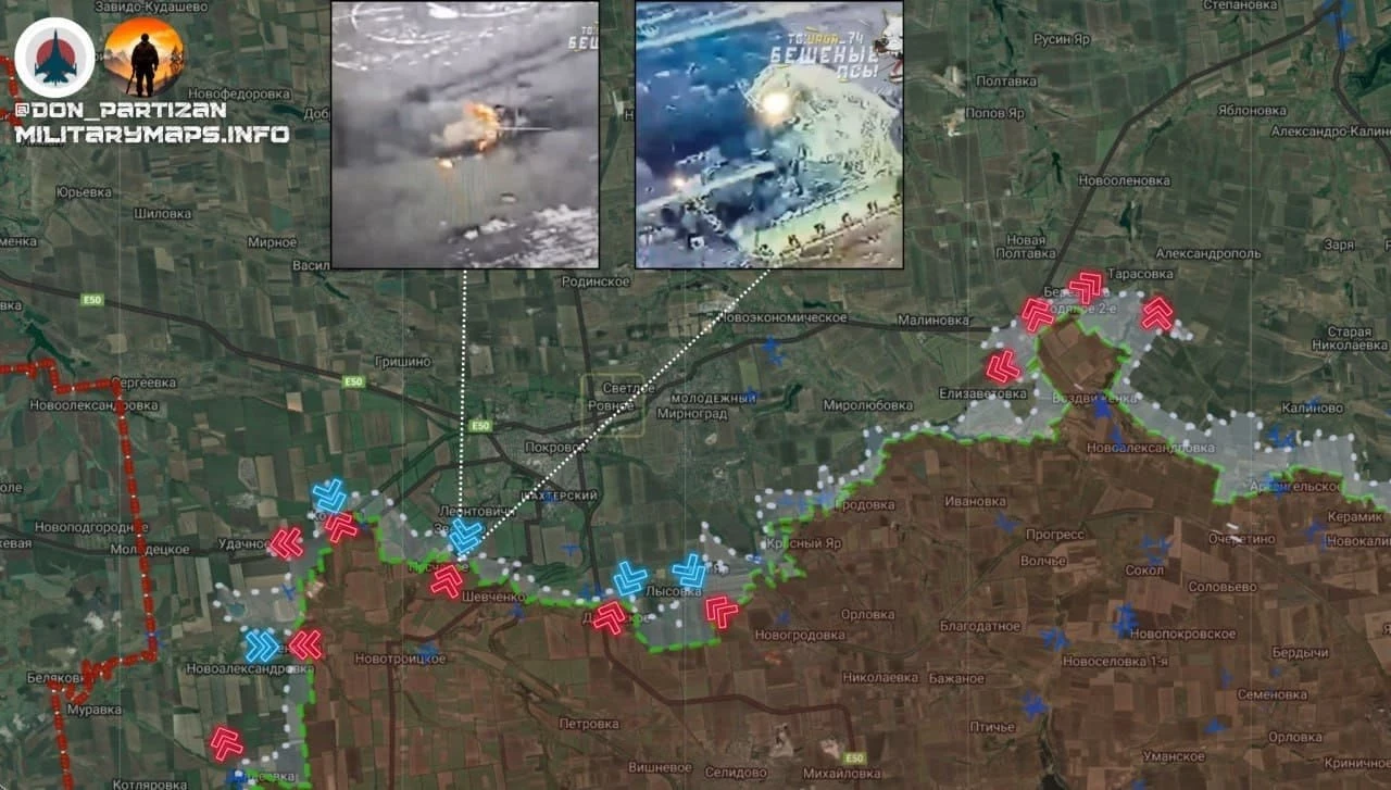 На Красноармейском направлении в районе Успеновки продолжаются наши атаки. В северной части Песчаного идёт зачистка. В районе Котлино - без изменений, сообщает в Telegram-канале военкор Евгений Лисицын.