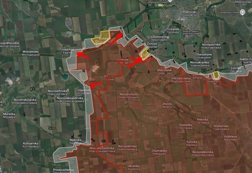 На Покровском направлении продолжаются встречные бои в районе Водяное Второе и Зелёное поле, ВС РФ имеют тактические успехи.