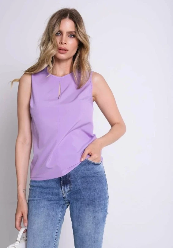 Если вы хотите добавить в гардероб немного игривости, легкости и цвета — самое время купить летнюю блузку от бренда A-A Awesome Apparel by Ksenia Avakyan. Модель выполнена из струящейся, приятной на ощупь ткани с высоким содержанием полиэстера и эластана. Блуза свободного силуэта красиво драпируется и не сковывает движения, а кокетливый вырез в зоне декольте добавляет образу женственности, не перегружая его. Летний акцент — отсутствие рукавов, что особенно актуально в жаркую погоду. Представлена в широком ассортименте оттенков, но сиреневый — абсолютный хит для свежего и запоминающегося лука.