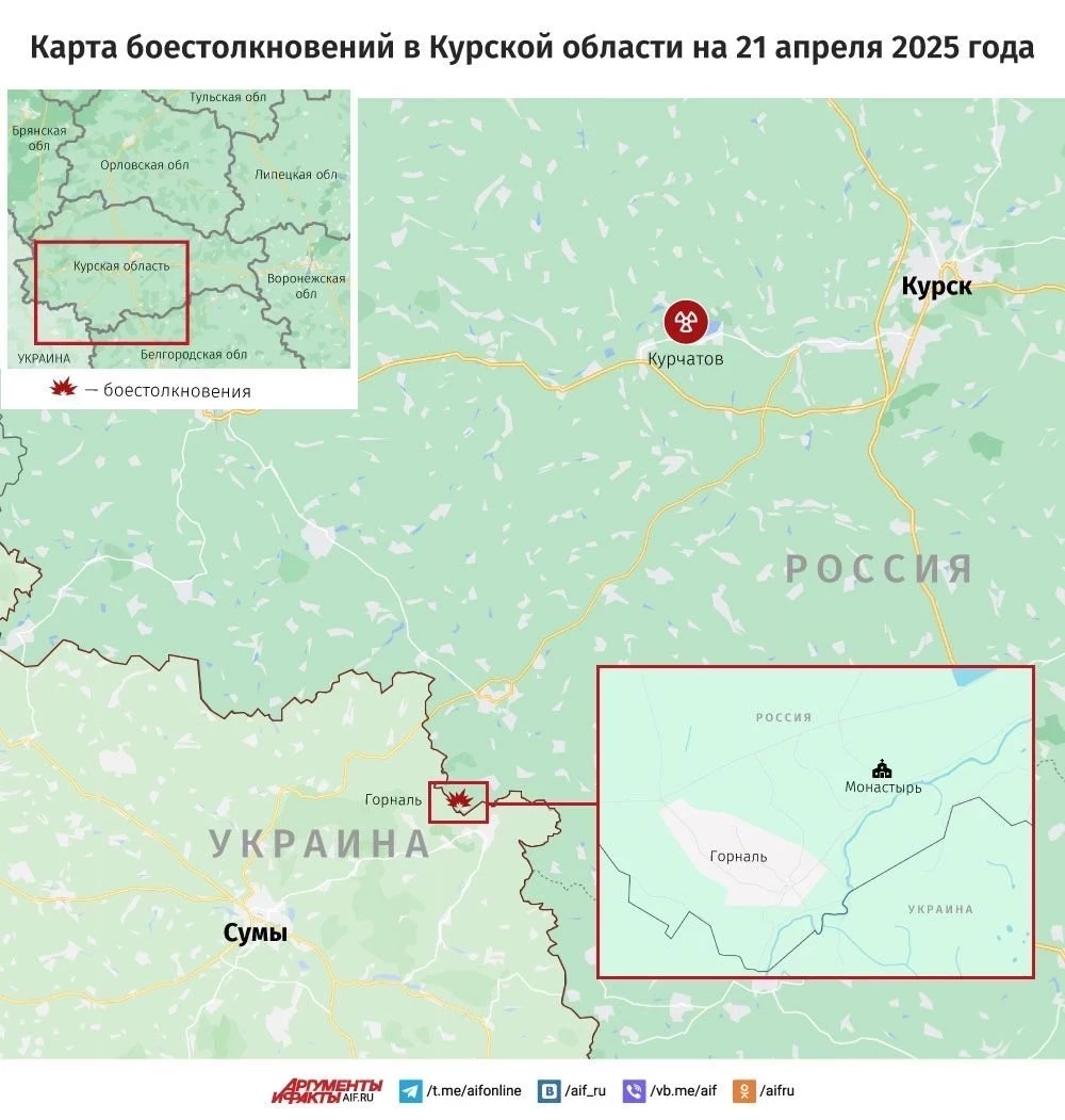 Главные новости » Эксклюзив » В Курской области идут интенсивные бои в окрестностях Горналя: карта боевых действий по состоянию на 21.04.2025