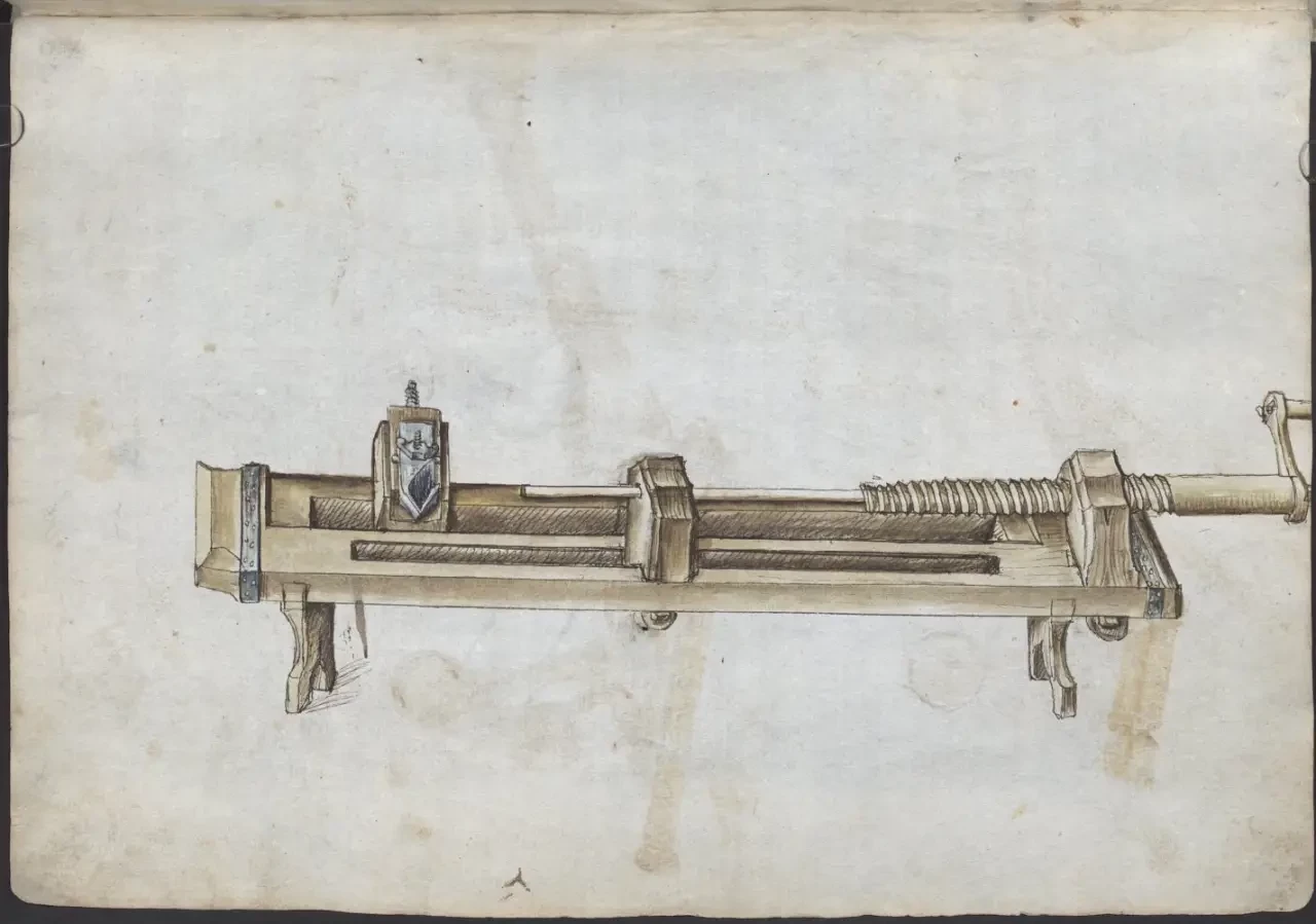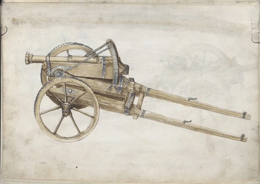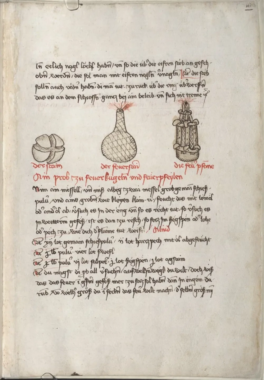 О самом авторе известно, что в 1460 году Мартин Мерц поступил на службу в качестве оружейника ко двору курфюрста Пфальца Фридриху I Победоносному (имел он и прозвище «Злой Фриц», и, видно, недаром), а спустя девять лет смог сделаться главным оружейником его армии. Когда Фридрих I умер в 1476 году, Мерц продолжил свою службу при курфюрсте Филиппе. А еще Мартин Мерц работал с металлом: усовершенствовал ряд составных частей моделей пистолетов, с успехом отливал орудийные стволы и одновременно трудился над своей книгой «Feuerwerksbuch» («Книгой фейерверков»). Других книг он не написал, но зато в этой уровень своего времени отразил очень четко, указав вдобавок еще и на ряд важных принципов конструирования порохового оружия. Итак, будем перелистывать самые интересные страницы этой книги и рассматривать то, что на них изображено.