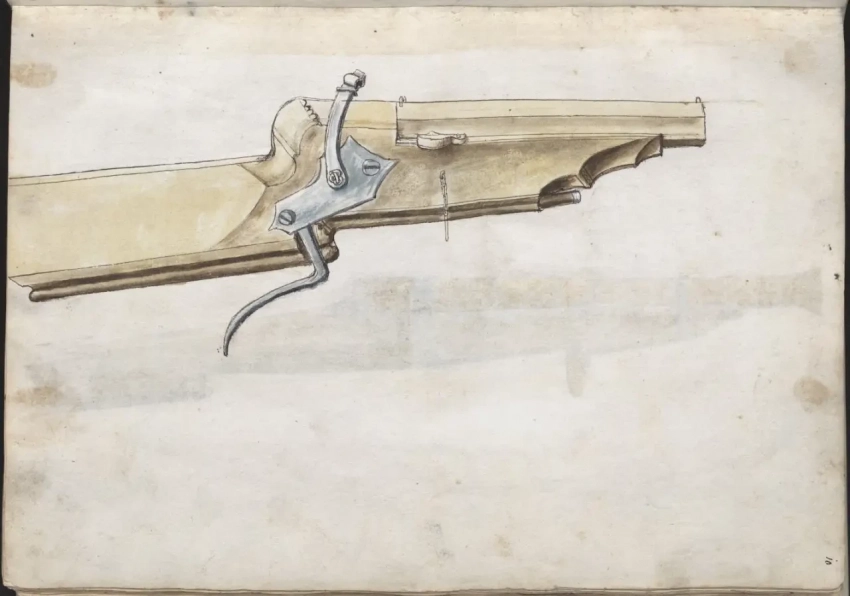 Очень точное изображение тогдашнего ручного огнестрельного орудия типа карабина. То есть на момент написания этой книги подобные «ружья» уже существовали…
