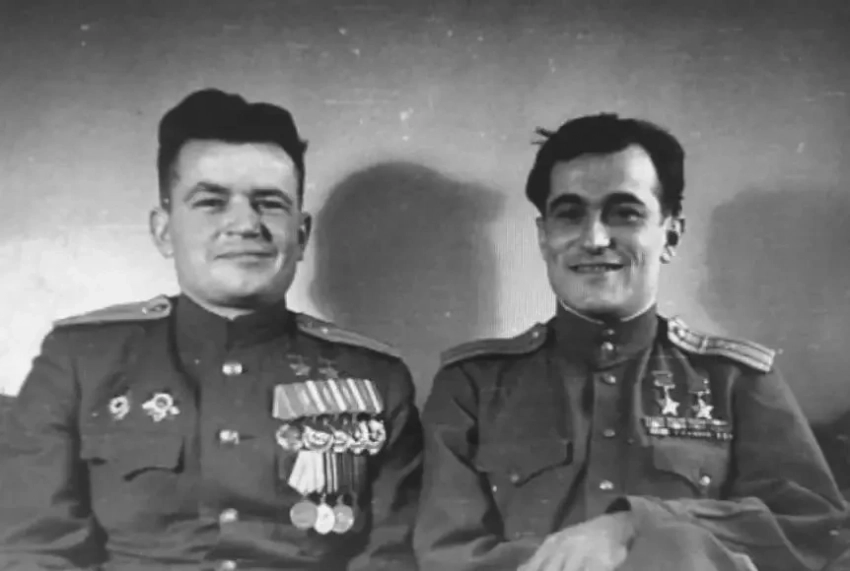 Два капитана 9 гвардейского истребительного авиаполка – Герои Советского Союза А. Алелюхин и С. Амет-хан