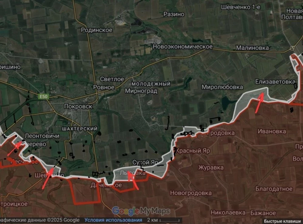 На Покровско-Новопавловском направлении отмечаются боестолкновения в районе Елизаветовки. Продолжаются встречные бои южнее Покровска по линии Лысовка-Шевченко-Зверево. Под контроль российских войск перешла Надеждинка, а также участок местности севернее упомянутого населённого пункта. Продолжаются боестолкновения в Котляровке и западнее Богдановки.