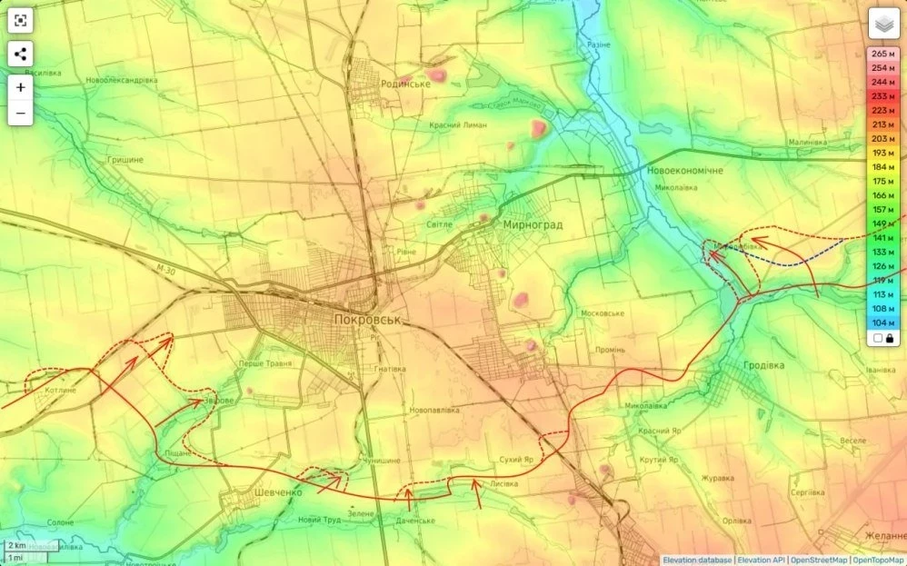 В районе Удачного идут бои за железнодорожную станцию, которая имеет ключевое значение для контроля над селом. В районе Котлино российские войска не только выбили украинские подразделения из села, но и заняли господствующую высоту - ферму севернее населенного пункта. Это позволило им восстановить позиции, которые были потеряны ранее.