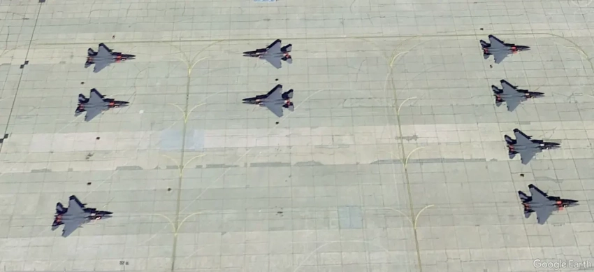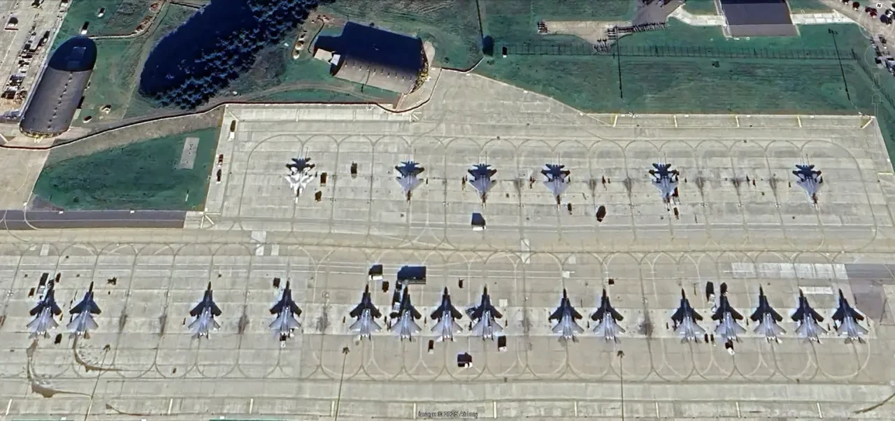 Спутниковый снимок Google Earth: истребители F-35A на авиабазе Волкель