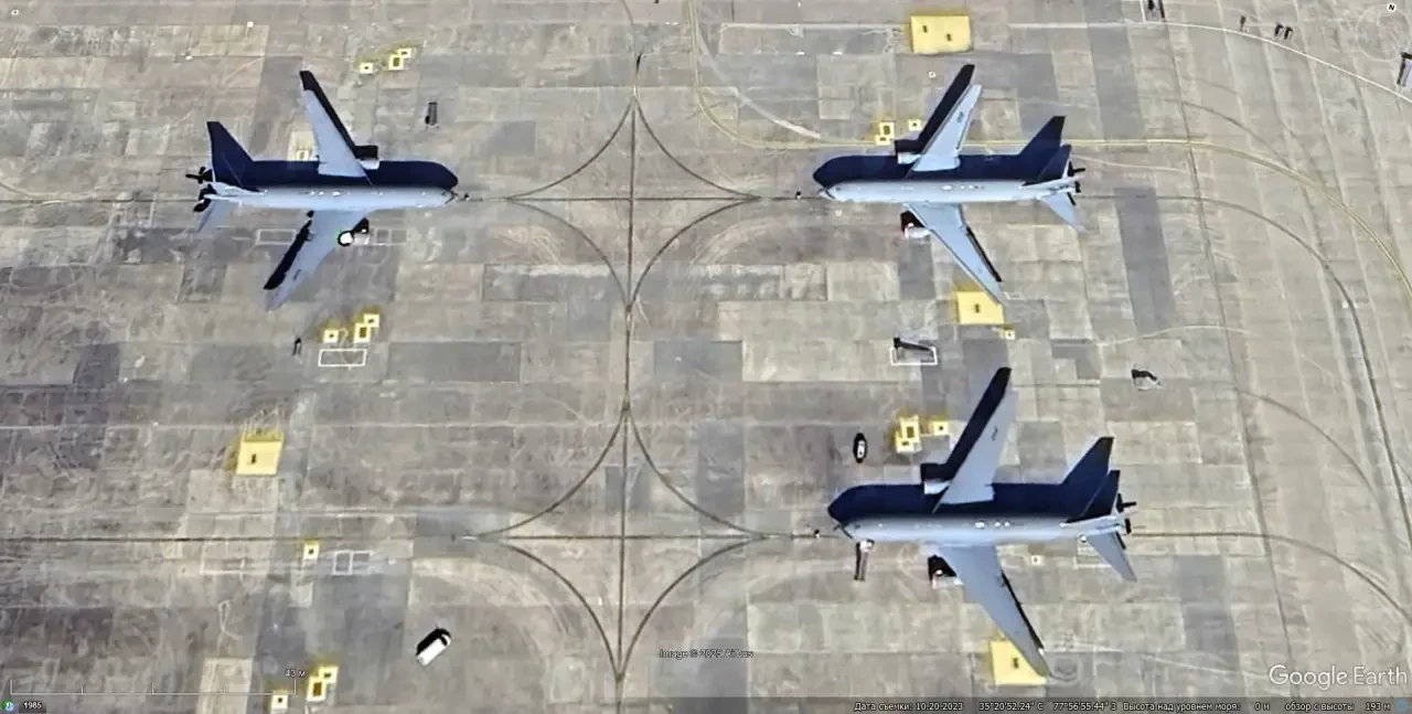 Спутниковый снимок Google Earth: самолёты-заправщики KC-135R на авиабазе Инджирлик