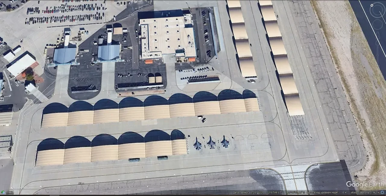 Спутниковый снимок Google Earth: истребители F-16C на выделенной территории Международного аэропорта Тусон
