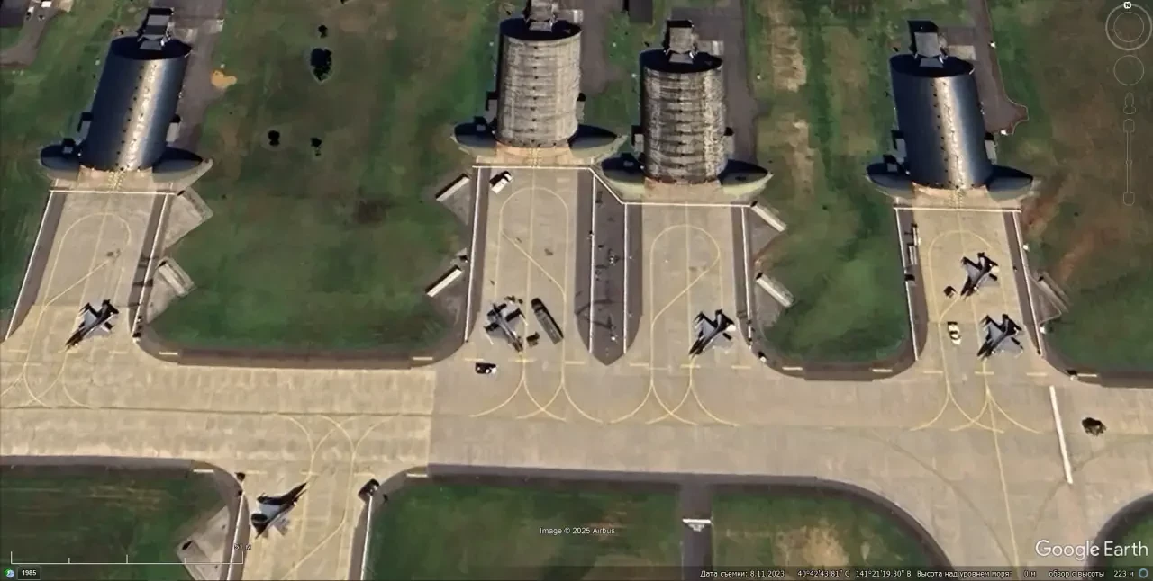 Спутниковый снимок Google Earth: истребитель F-16C на авиабазе Шпангдалем