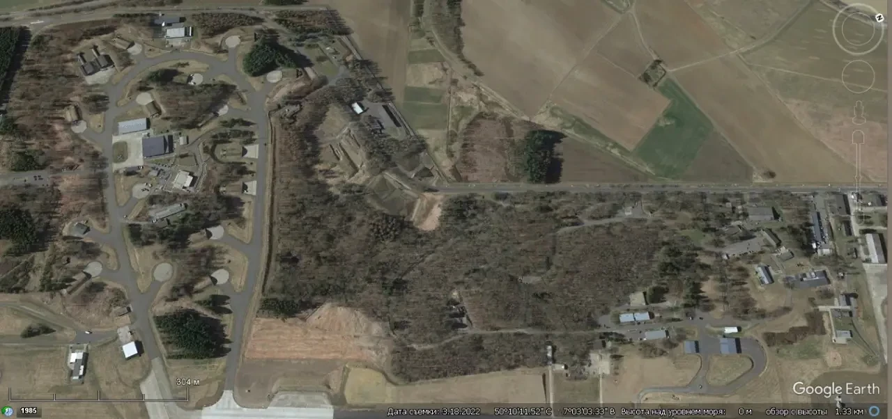 Спутниковый снимок Google Earth: комбинированные укрытия на авиабазе Бюхель