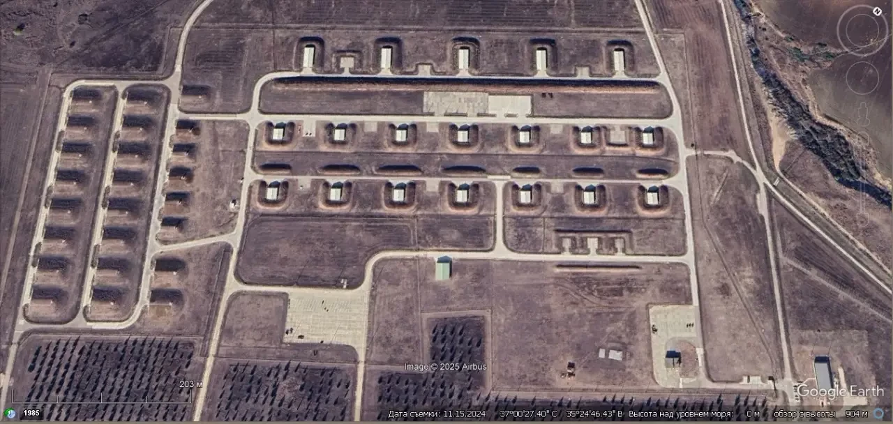 Спутниковый снимок Google Earth: железобетонные авиационные укрытия на авиабазе Инджирлик