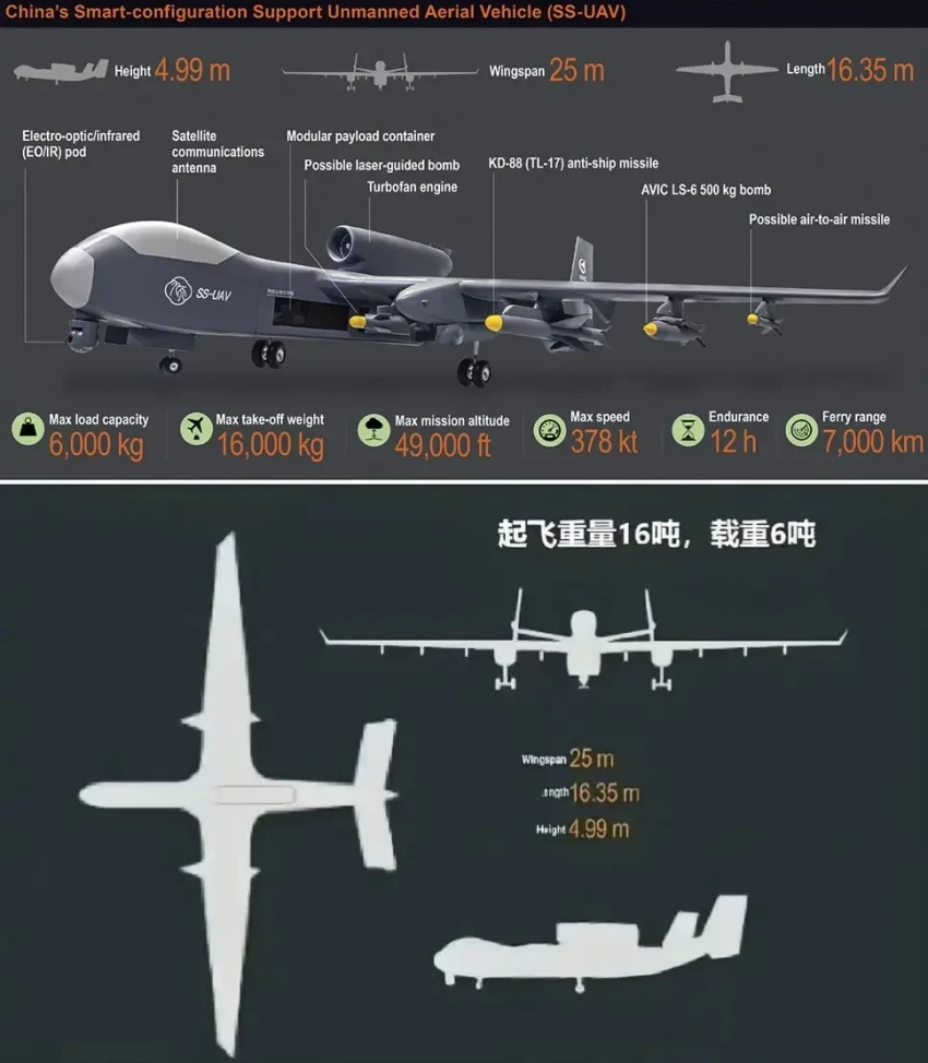 С потолком полёта в 15 км этот беспилотник может летать выше рабочего потолка практически всех систем ПВО. Он в состоянии безнаказанно сбрасывать высокоточное управляемое оружие на цели