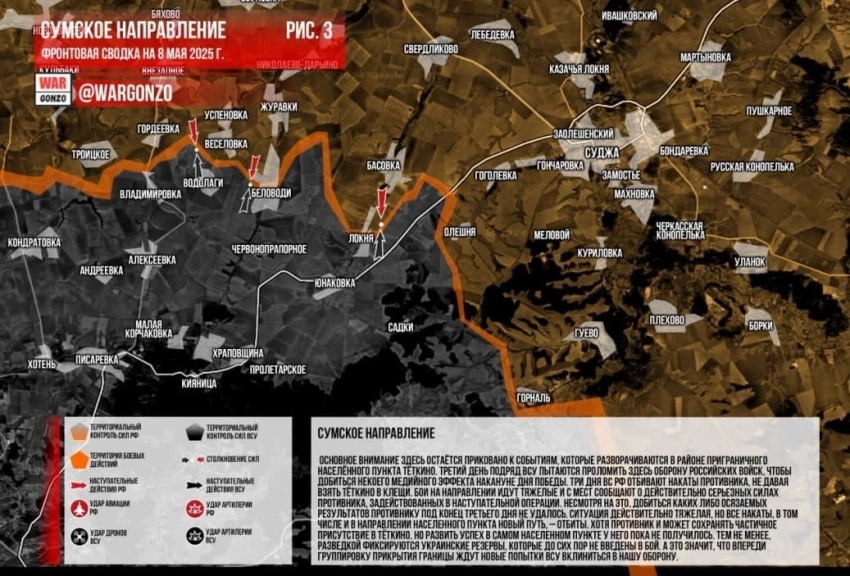 Последние новости и свежая карта боевых действий в зоне проведения специальной военной операции (СВО) - в материале N4k по состоянию на утро сегодняшнего дня, 8 мая 2025 года.