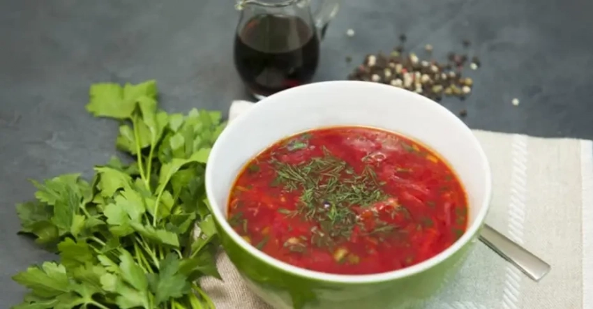 Чтобы совсем прочувствовать ТОТ вкус, попробуйте этот борщ с ржаными сухарями. Ну а кто не хочет полного погружения в историю – ломоть хлеба, намазанного горчицей, и ломтики сала из морозилки вам в помощь. Ну и ложечка сметаны тоже не лишней будет.