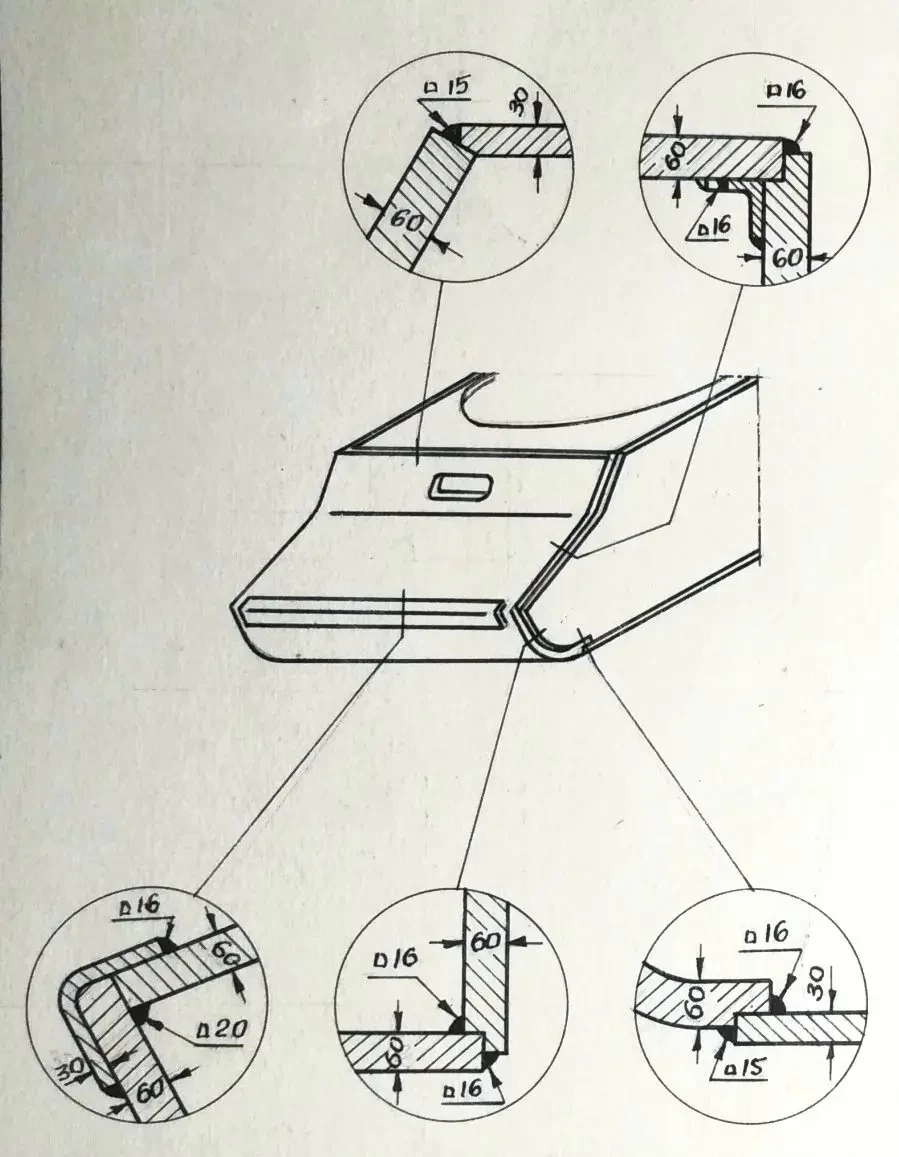 3. Для соединений верхних и нижних лобовых деталей с бортами наилучшую прочность и живучесть показывают выполненные при помощи аустенитовой сварки соединения в четверть, в шип (для брони высокой твердости через угольник), в шип с прорезью, в притык с прорезью и отдельно в притык в случаях, когда деталь имеет опору на другие смежные детали.