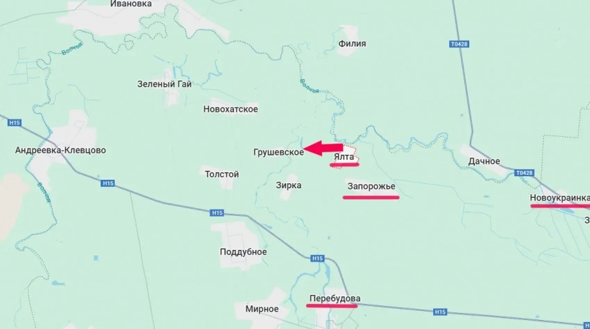 Пока же российская армия после освобождения Ялты на западе ДНР продолжает продвижение в сторону населённых пунктов Грушевское и Звезда (Зирка), что севернее дороги Н15 на Запорожье.