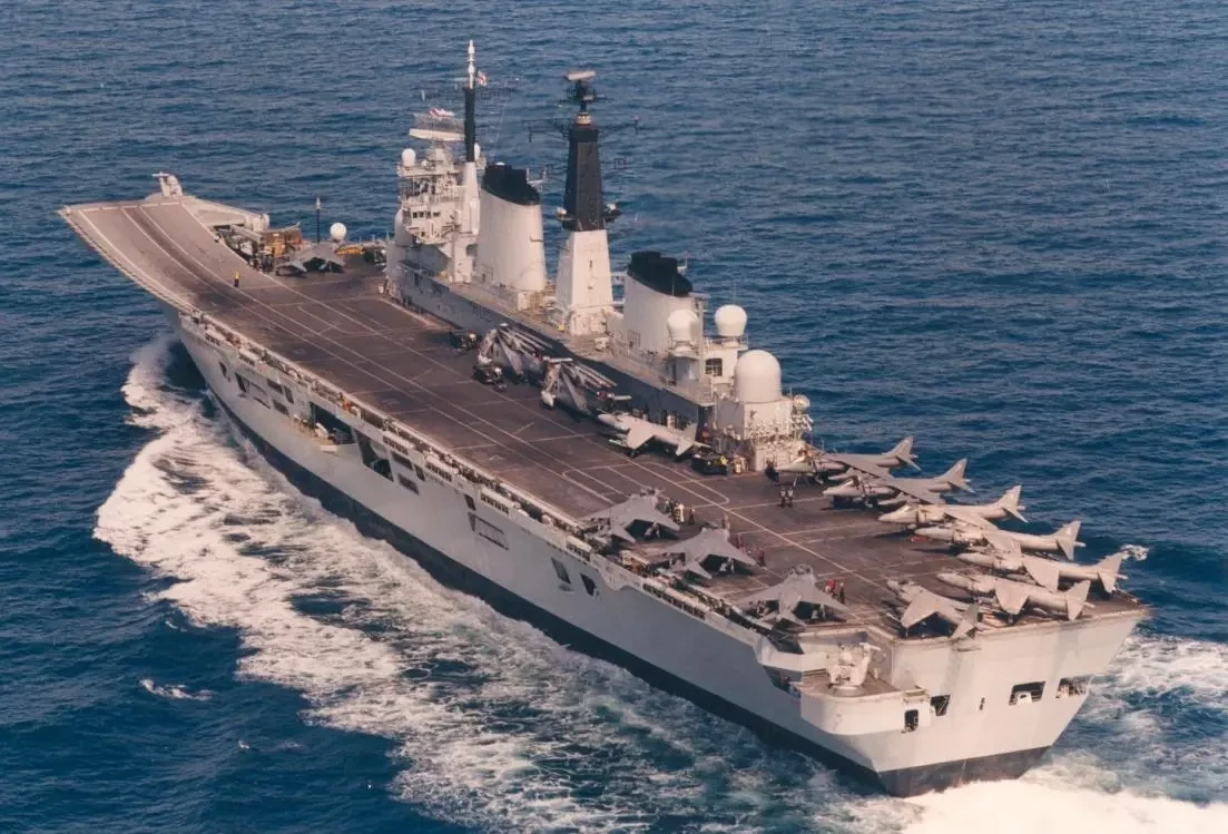 У «Харриеров», как морского, так и сухопутного базирования, имелось два основных варианта взлета (так-то их больше) – вертикальный и взлет с укороченным разбегом. Но последний не мог быть в полной мере реализован на «плоскопалубных» авианесущих кораблях, так как длина короткого разбега британских СВВП превышала 300 м. Все-таки максимальная длина того же «Уоспа» составляет 257,3 м, но полетная палуба несколько короче (к сожалению, ее точных размеров я не нашел).