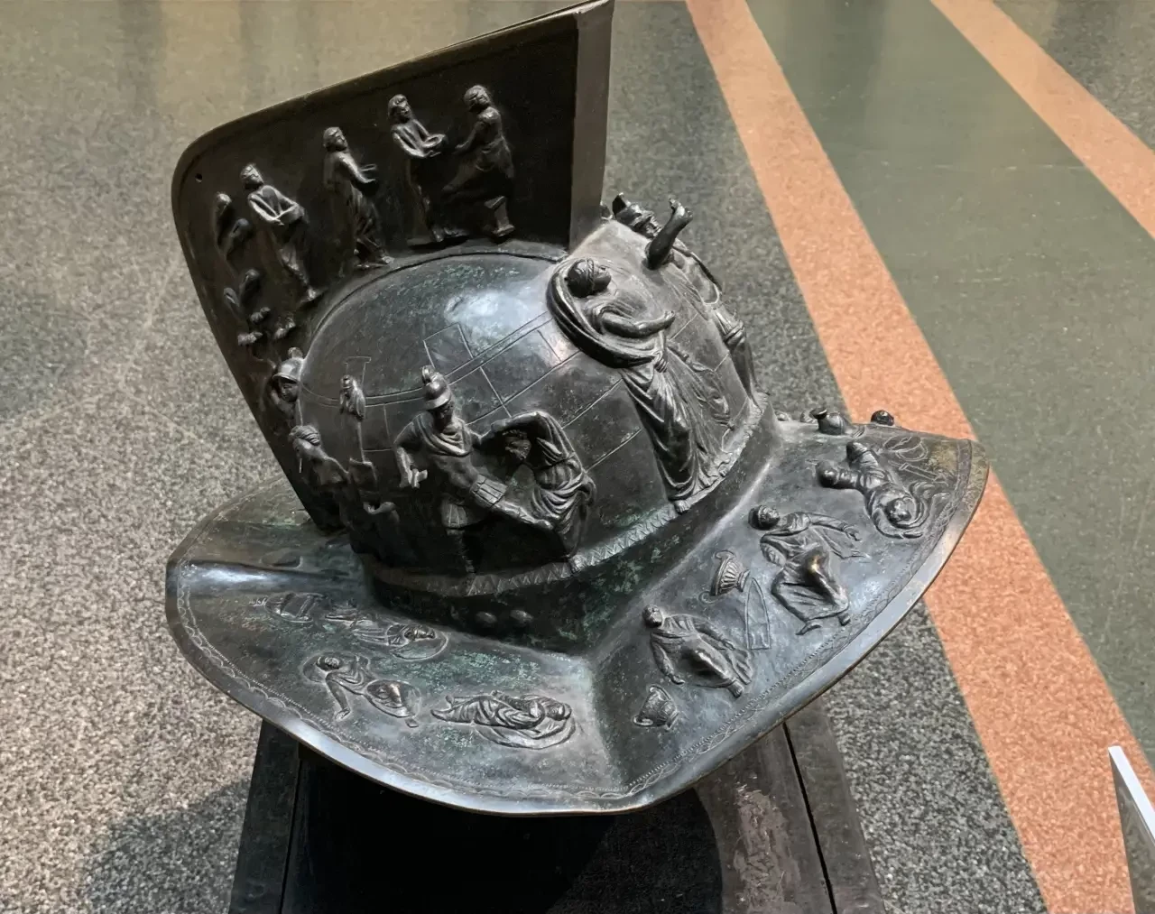 Здесь же можно увидеть и вот такие прекрасные вещи: шлем и поножу гладиатора. Бронза, литье. Подлинники I века н.э.; найдены в Помпеях; аналоги хранятся в Национальном археологическом музее Неаполя