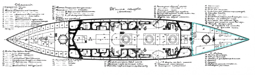 Но, дабы не умножать сущностей сверх необходимого, пока будем считать, что «Ослябя» в завязке Цусимского сражения сидел в воде без дифферента и что его жилая палуба находилась на уровне моря.