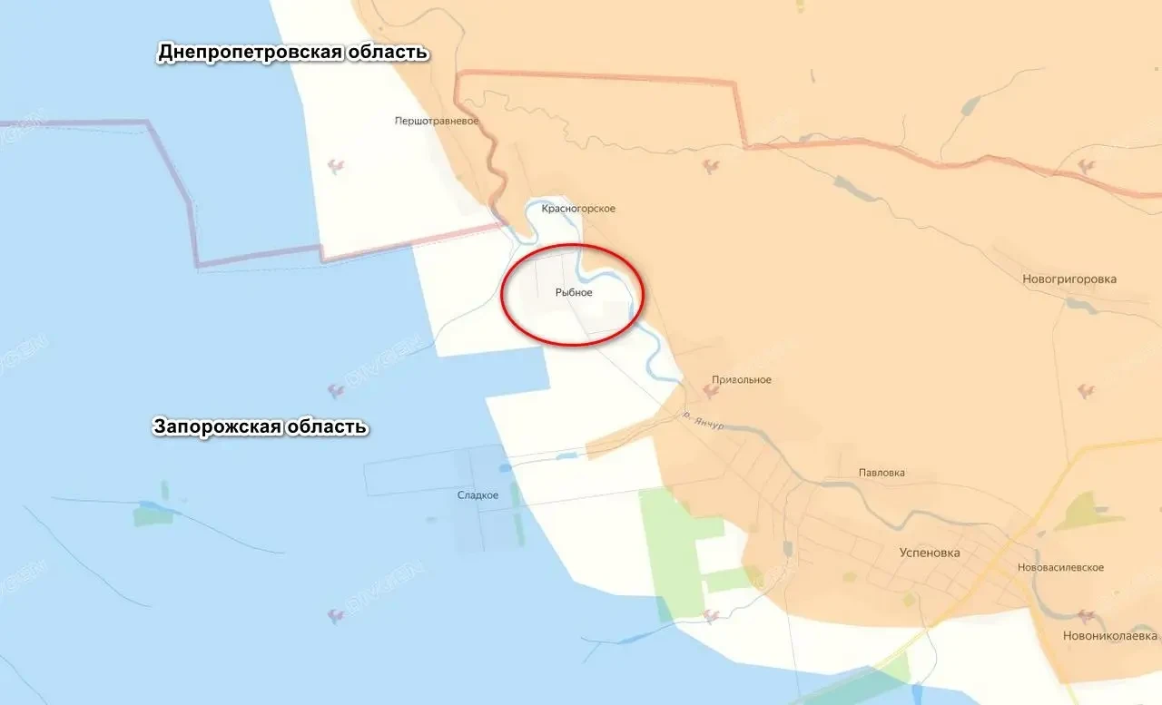 Судя по карте, Рыбное было последним укрепрайоном на Янчуре, линия обороны прорвана на всем протяжении, российские войска перешли на западный берег реки. Впереди трасса Покровское — Гуляйполе, а также сама гуляйпольская группировка ВСУ.