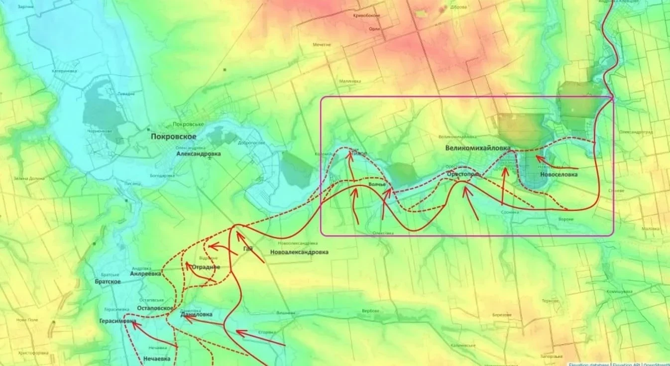 По данным военных Telegram-каналов, интенсивные бои наблюдаются в районе Новоданиловки и Новоандреевки на запорожском фронте. Российская армия ведет наступательные действия с целью выхода к Орехову.