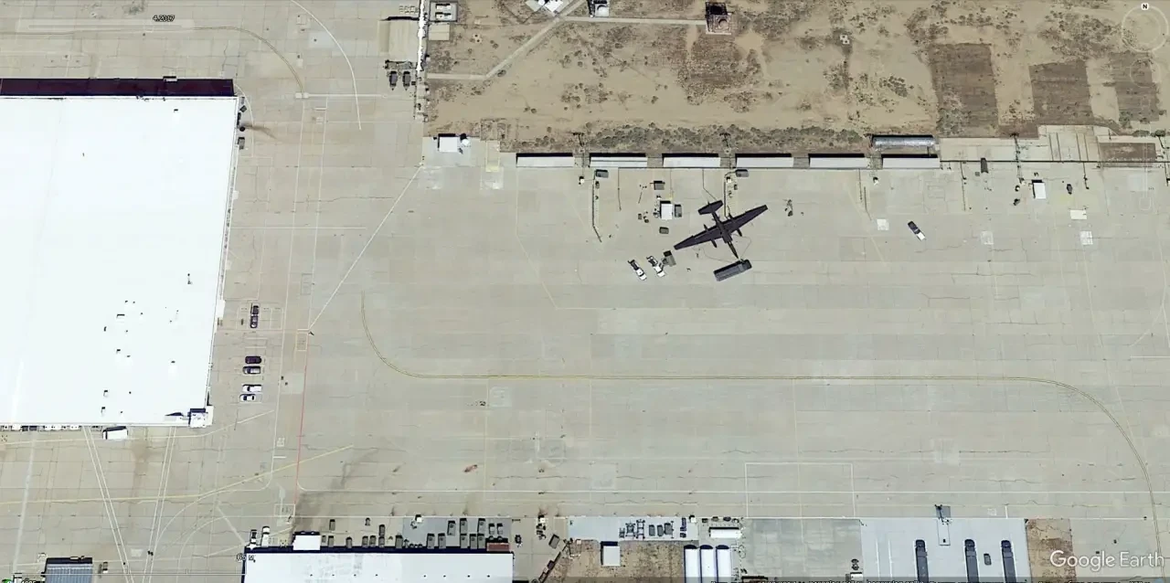 Спутниковый снимок Google Earth: самолёты Lockheed U-2S Dragon Lady на авиабазе Бил