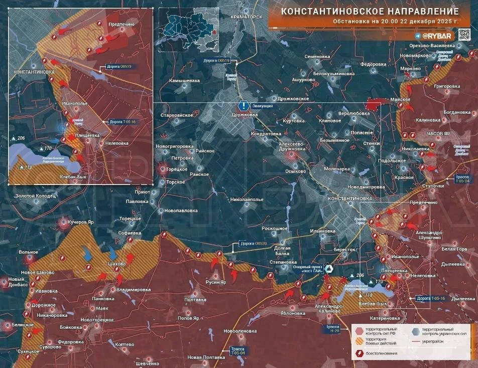 На Константиновском участке идут бои на подступах к Степановке и Берестку. В Константиновке встречные столкновения, пока без изменений. В районе Часов Яра наши атакуют в районе Новомарково и в Миньковке, часть этого села в серой зоне.