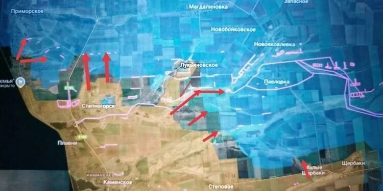 На Запорожском участке продолжаются бои в Приморском. В Степногорске идёт зачистка. Есть продвижение от Лукьяновского в сторону Павловки и Новояковлевки. Также ВС РФ продвигаются широким фронтом на восток севернее Степного и Малых Щербаков. В районе Орехова ситуация без изменений.