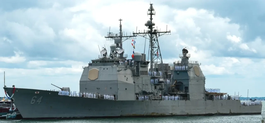 Крейсер типа «Тикондерога» — собственно, других в US Navy и нет. Снимок сделан в июле 2025 года, когда корабль вернулся из Залива.