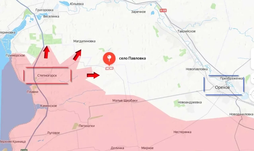 Продвижение российских штурмовых групп при поддержке артиллерии и дроноводов идёт в сторону села Павловка. А это способствует будущему охвату гарнизона ВСУ в Орехове, особенно если удастся перерезать ключевую автодорогу Р-08, соединяющую этот город с областным центром – Запорожьем.