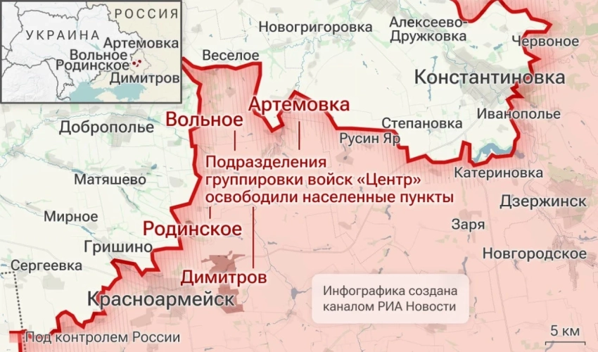Российские подразделения возобновили штурмовые действия южнее Константиновки, выбив ВСУ из системы оврагов восточнее дороги на Хотень.