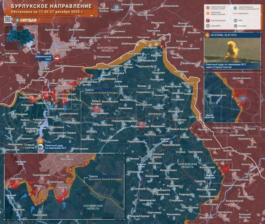 Вместе с этим сообщается также о полном контроле над территорией между реками Янчур и Гайчур и подготовке плацдармов на флангах. Поступают данные о выходе российских подразделений к окраинам Зализничного, расположенного на пересечении железнодорожных путей.