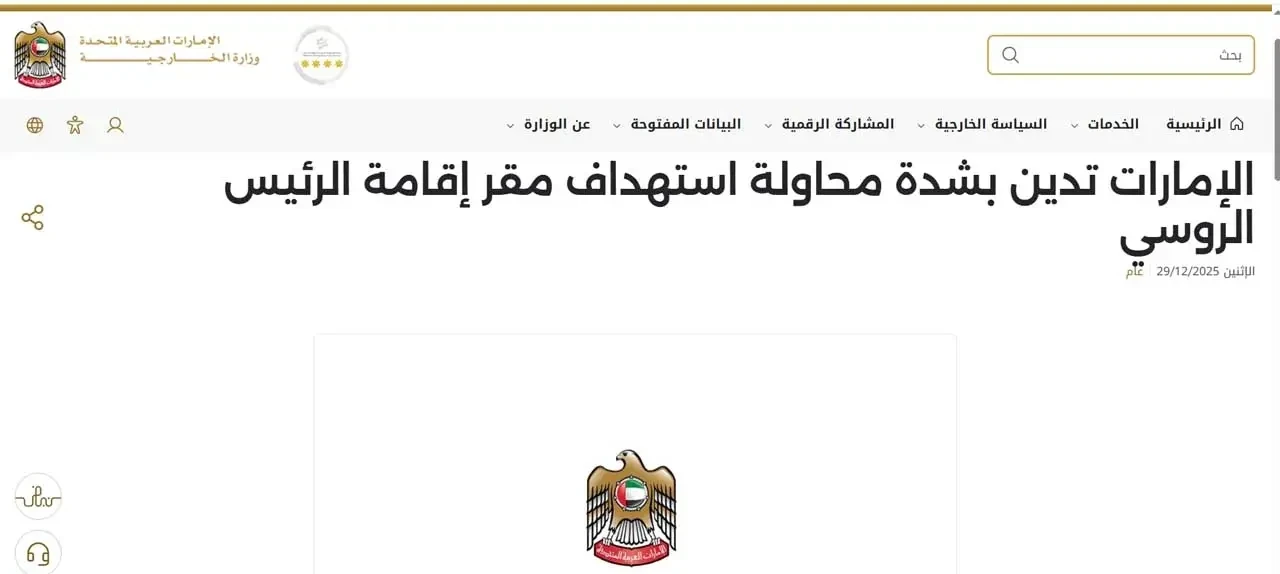 Атаку на государственную резиденцию президента России комментирует МИД ОАЭ. На сайте ведомства опубликовано ёмкое заявление, в котором говорится о решительном осуждении попытки атаки: