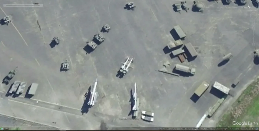 Спутниковый снимок Googlе Eаrth: позиция ЗРК С-125М в 3 км северо-западней населённого пункта Камиара. На позиции имеется только две пусковые установки, но они полностью заряжены. Снимок сделан в феврале 2023 года