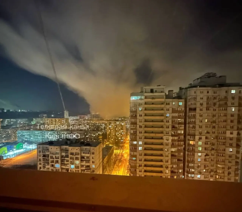 Сообщается о крупном пожаре в Деснянском районе украинской столицы. Там, как видно, свет есть.