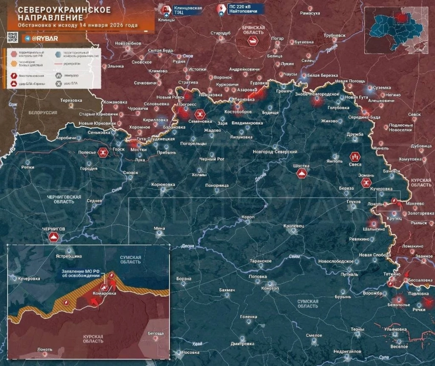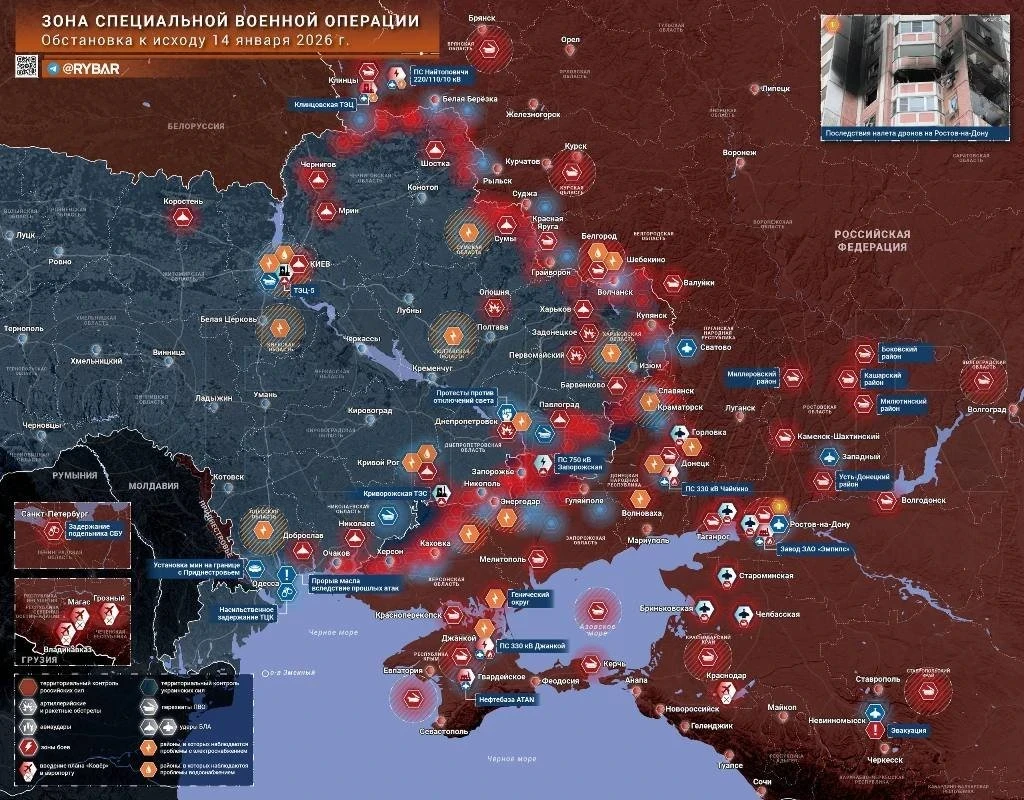 Новая карта боевых действий в зоне СВО на Украине на 15.01.2026