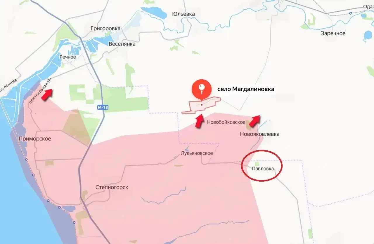 Подразделения армии России полностью выбили противника из села Павловка, расположенного к северо-востоку от недавно освобожденного города Степногорск. Село Павловка находится в Васильевском районе Запорожской области Украины, примерно в 30 километрах к северо-западу от города Васильевка и в 60-70 километрах к северо-западу от оккупированного ВСУ областного центра. Освобождение Павловки имеет важное значение, поскольку расстояние от этого населенного пункта до важной для снабжения украинского гарнизона в Орехове автодороги не превышает 15 километров. Параллельно автодороге через село Юрковка также проходят железнодорожные пути.