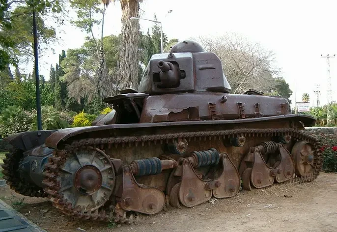 Подбитый сирийский танк Renault R35 сохранённый в виде памятника в кибуце Дгания-Алеф