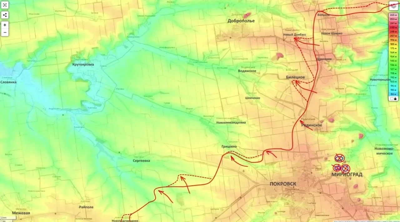 Направление на Доброполье: западнее Родинского наши бойцы овладели территорией площадью около 6 кв. км, выйдя к балке Водяной Яр. Это движение создает прямую угрозу Доброполью - последнему крупному укрепрайону ВСУ перед Славянско-Краматорской агломерацией.