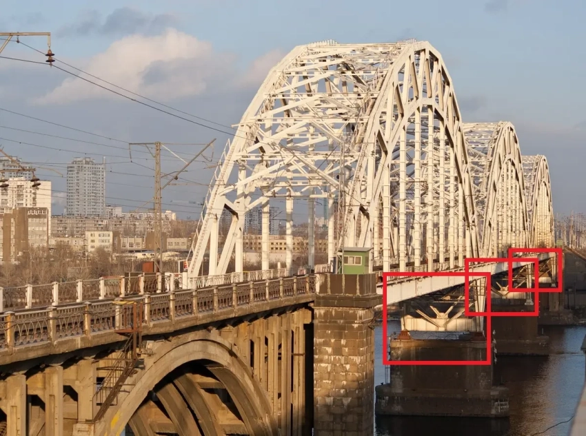 При попадании БПЛА-камикадзе «Герань» с такой БЧ в опору моста или в полотно в точке над опорой в этом месте образуется контрастное тепловое пятно, а в ночное время оно будет контрастным и в оптическом диапазоне. Точное наведение БПЛА обеспечит Starlink.