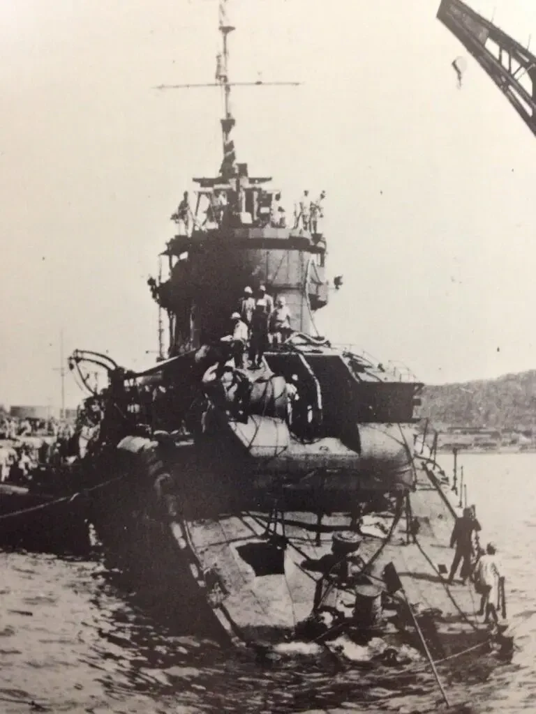 Но экипаж уперся и дотащил эсминец с болтающейся носовой частью до порта. Там корабль подлатали, и он потащился в Йокосуку на капитальный ремонт.
