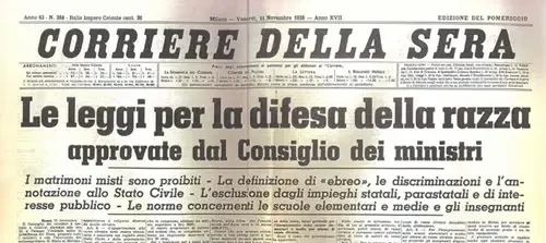 Ежедневная газета Ватикана, которая не подвергается цензуре, L'Osservatore Romano, печатает вскоре после провозглашения новой расовой политики статью, в основном призывающую к принятию мер против евреев, рассматривая евреев как опасность и говоря, что церковь всегда призывала к ограничению их прав. Эта статья в ежедневной газете Ватикана затем была подхвачена всей фашистской прессой по всей Италии, чтобы оправдать введение антисемитских расовых законов, которые вскоре должны вступить в силу.