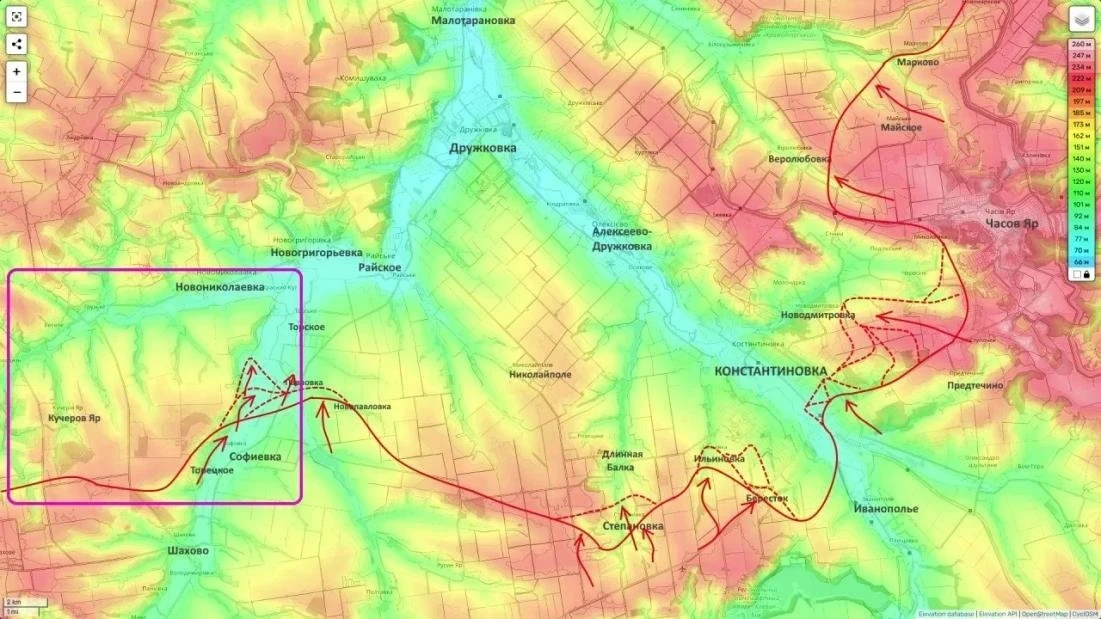 На других участках фронта СВО российские штурмовые группы осуществили повторный заход в юго-западную часть Константиновки, закрепляясь в районе высотной застройки через Бересток и Ильиновку. Штурм города ведется с двух направлений, что критически усложняет положение украинского гарнизона.